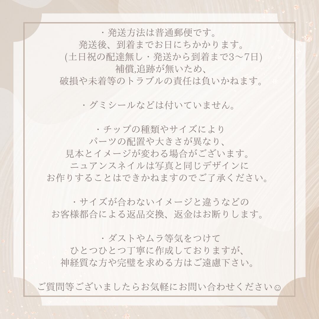 ⚠︎お客様で正しく計測して頂いても、爪のカーブ具合によってチップが合わない場合がございます。